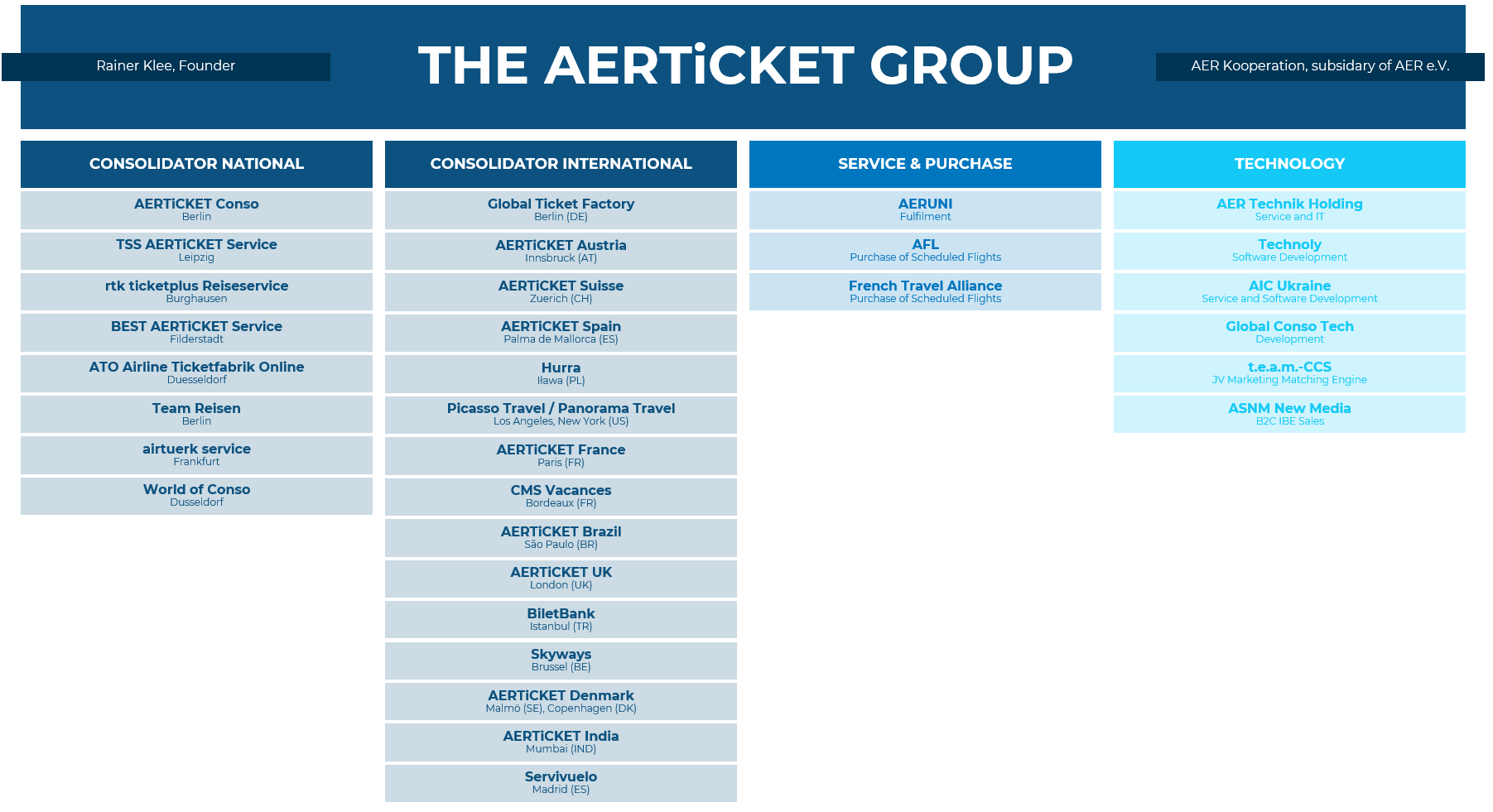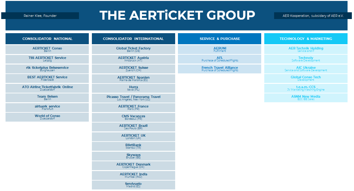 The AERTiCKET Group is one of the world's largest full-service consolidators. The group includes around 25 national and international consolidators.